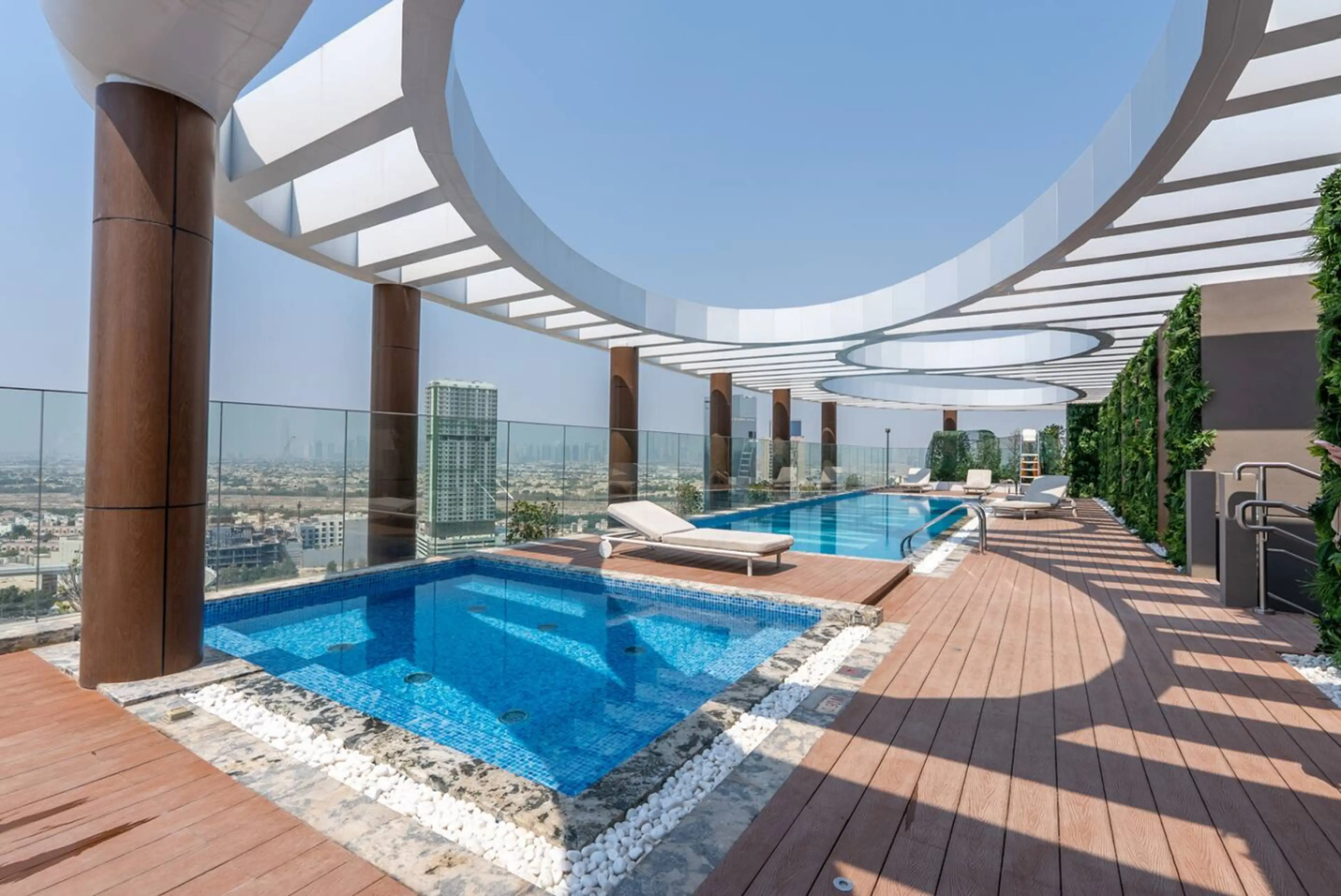 Welcome to our brand-new modern studio apartment, centrally located in Dubai! This fully equipped studio has everything you need to feel at home. Relax in comfort, take a dip in the refreshing rooftop pool, or stay active in the well-equipped gym. Kitchen: Step into the sleek, modern kitchen, comp...